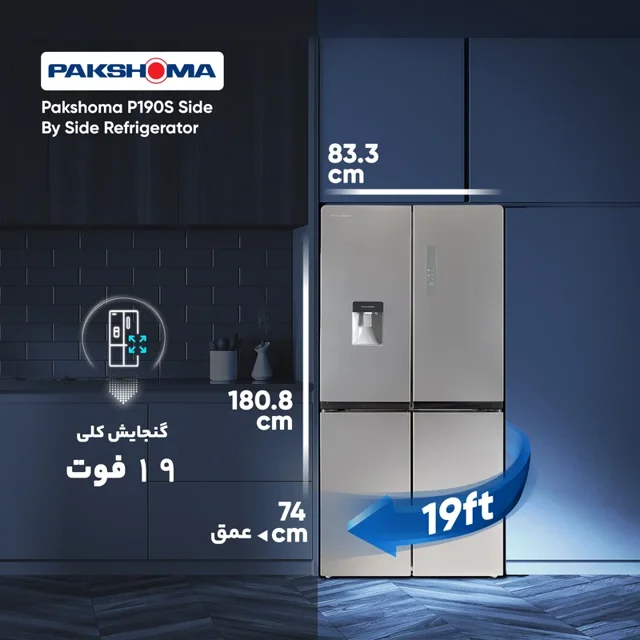 یخچال فریزر ساید بای ساید 19 فوت پاکشوما مدل 4D RDP 530 W