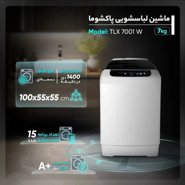 ماشین لباسشویی 7 کیلوگرم اتوماتیک پاکشوما مدل TLX 7001 W