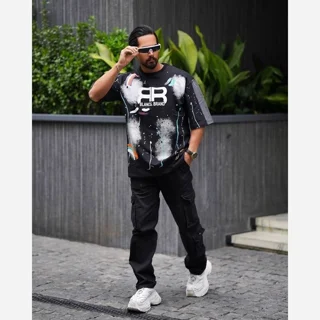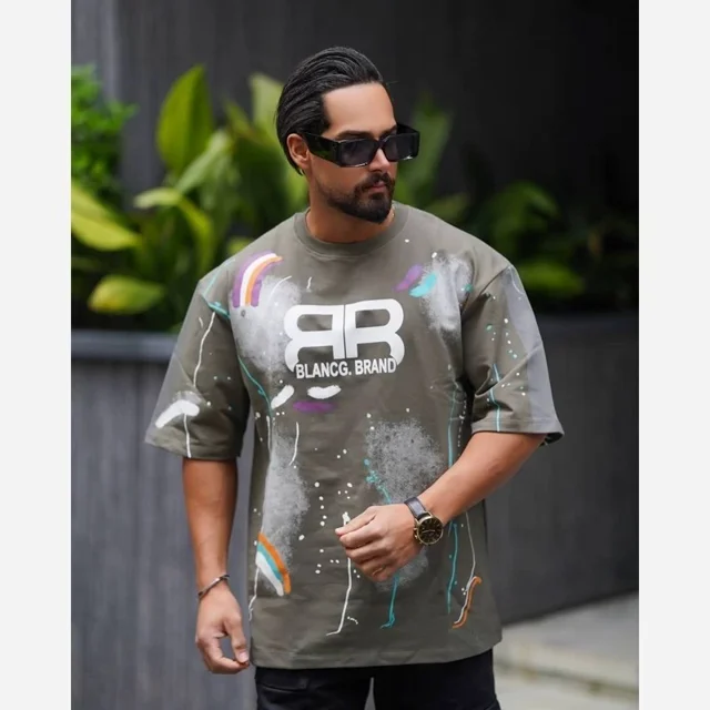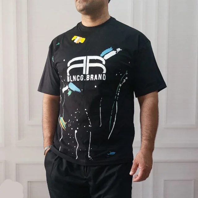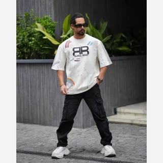 تیشرت باکسی مردانه طرح Balenciaga تی شرت باکسی طرح بالنسیاگا تیشرت نخی استین سه ربع پنبه ای
