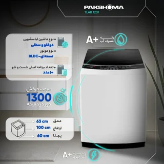ماشین لباسشویی 12 نیمه‌اتوماتیک پاکشوما مدل TLAB 1201