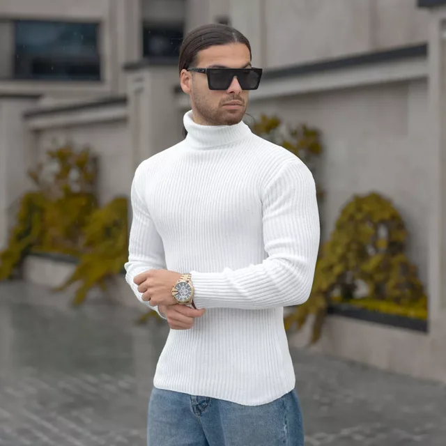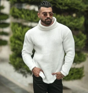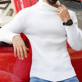 بافت یقه اسکی کبریتی مردانه سفید فریسایز، طراحی کشبافت مشکی با طرح کبریتی، مناسب برای استفاده روزمره و زمستانی، فری سایز و راحت، ترکیب شیک و کلاسیک برای استایل مردانه، جنس با کیفیت و نرم برای محافظت در برابر سرما.