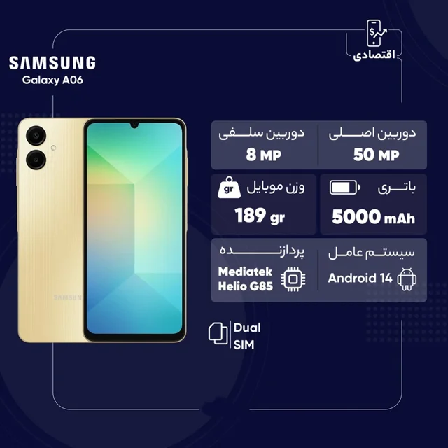 گوشی موبایل سامسونگ مدل Galaxy A06 با دو سیم کارت، ظرفیت داخلی 128 گیگابایت و رم 6 گیگابایت، عملکرد سریع و فضای ذخیرهسازی مناسب را برای کاربران فراهم میکند. طراحی مدرن و قابلیتهای کاربردی این محصول انتخابی ایدهآل برای استفاده روزمره است.