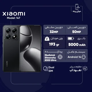گوشی موبایل شیائومی مدل 14T با دو سیم کارت، ظرفیت 512 گیگابایت و رم 12 گیگابایت، طراحی مدرن و کارایی بالا را ارائه میدهد و برای کاربران حرفهای که نیاز به حافظه و سرعت پردازش زیاد دارند، مناسب است. باتری قوی و دوربین با کیفیت از دیگر ویژگیهای این گوشی میباشد.